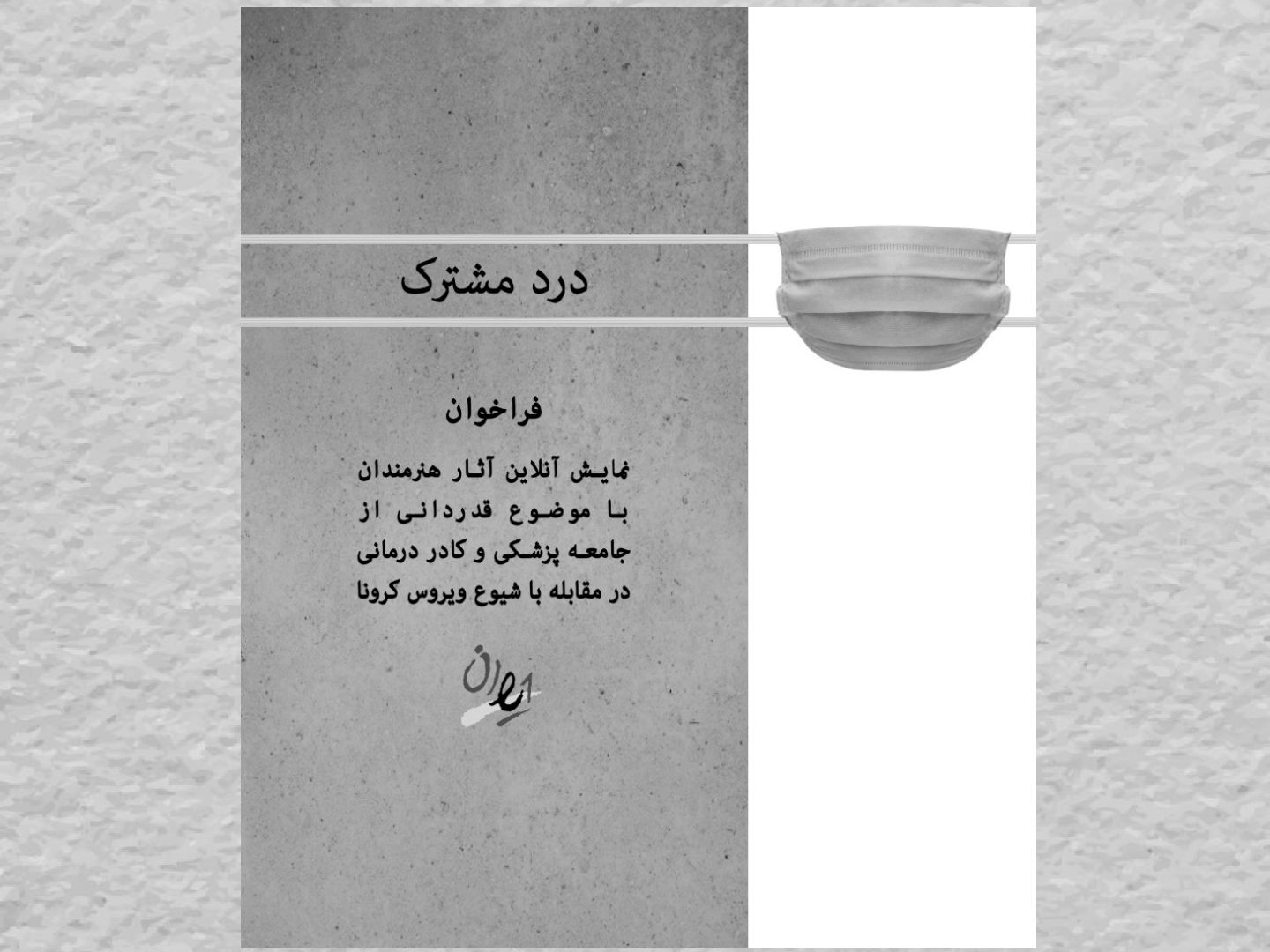 به گزارش روابط عمومی مرکز تجسمی حوزه هنری به نقل از هنر آن لاین، پیرو رسالت هنرهای تجسمی، گالری ایوان از هنرمندان دعوت میکند تا با بازنمایی روایت شخصی خود از واقعه شیوع ویروس کرونا و بازتاب آن بر جامعه پزشکی و کادر درمانی، با ارسال تصویر آثار مرتبط با موضوع در فراخوانی تحت عنوان "درد مشترک" شرکت نمایند تا از جانفشانی کادر سلامت قدردانی و تشکر کنند.
