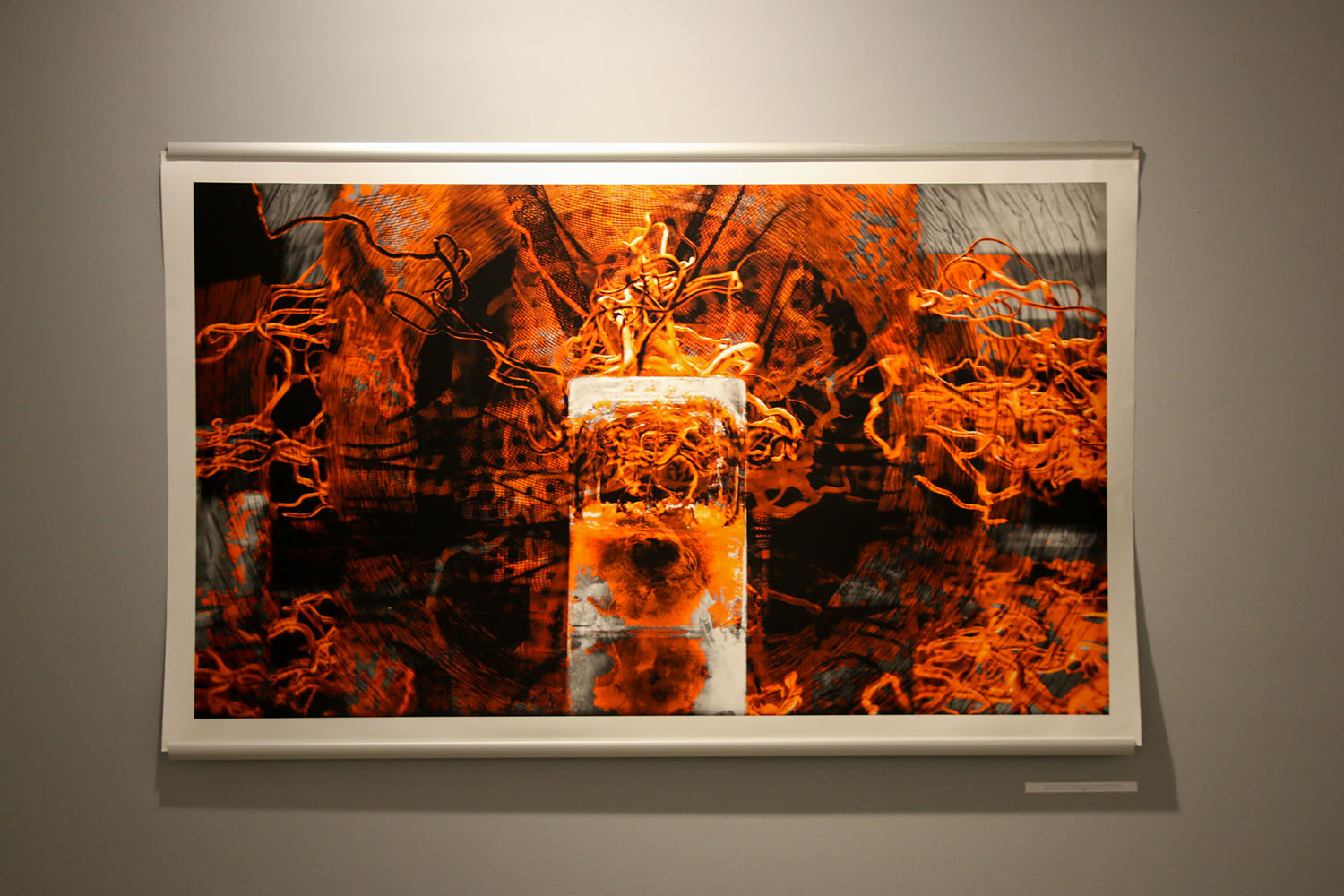 محمودی ادامه داد: گرنابو اهمیت زیادی به ماده و بافت میدهد و با استفاده از مواد حاضر و آماده و چیدمان آنها به فضای مورد نظر خود نزدیک میشود. او عکاسی را با لنز ماکرو انجام میدهد که قابلیت بزرگنمایی را ایجاد میکند و در مرحله آخر عکسها در کامپیوتر ترکیب میشوند. او از نرم افزارهایی مانند فتوشاپ برای تغییر عکسها استفاده نمیکند بلکه تعداد زیادی عکس به صورت لایههای متعدد روی هم قرار میگیرند تا تصویر نهایی را شکل دهند.