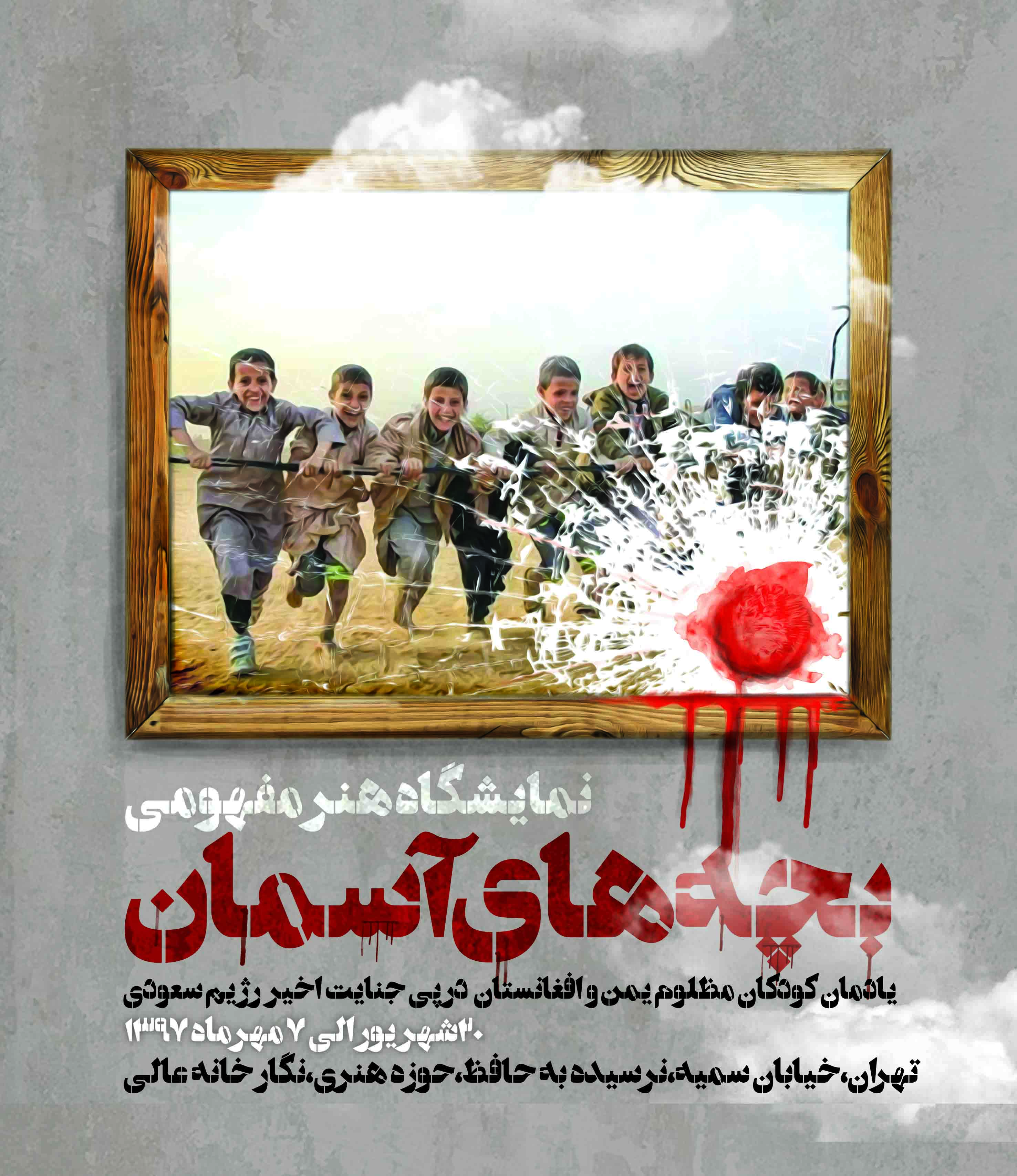 به دنبال جنایت اخیر رژیم سعودی در بمباران اتوبوس حامل کودکان یمنی که منجر به شهادت چندین نفر از کودکان شد، نمایشگاه هنر مفهمومی «بچه‌های آسمان» با هدف محکوم کردن رژیم سعودی و توجه دادن به بی‌تفاوتی سازمان‌های حقوق بشری نظیر یونیسف برگزار خواهد شد.این در حالی است که مجامع حقوقی بین‌المللی هیچ واکنشی نسبت به این جنایات نداشته‌اند و مقام معظم رهبری در رابطه با این جنایت‌ها اظهار داشتند؛ کار این روزهای دولت سعودی در یمن، مشابه جنایت صهیونیست‌ها در غزه است.