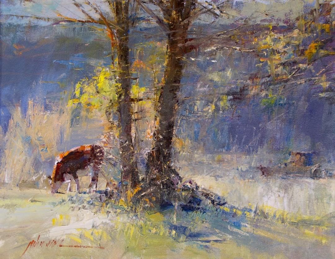 عمل و انرژی نفوذ بوم از جان کوک. طبیعت خودبهخودی برای نقاشیهایش وجود دارد که نیاز او را به سرعت در رسیدن به جوهر نور به عنوان رقص، سوراخ، مراقبت و پرش برای پیدا کردن راه خود را در سراسر موضوع وجود دارد. با استفاده از قلم مو به جای مداد، کوک به سبک شلوغ و آزاد است که کار او را مشخص می کند. هرگز نگران نباشید، هر نقاشی، شور و شوق خود را برای به دست آوردن خلق و خوی با درهم آمیختگی نور و سایه نشان می دهد.