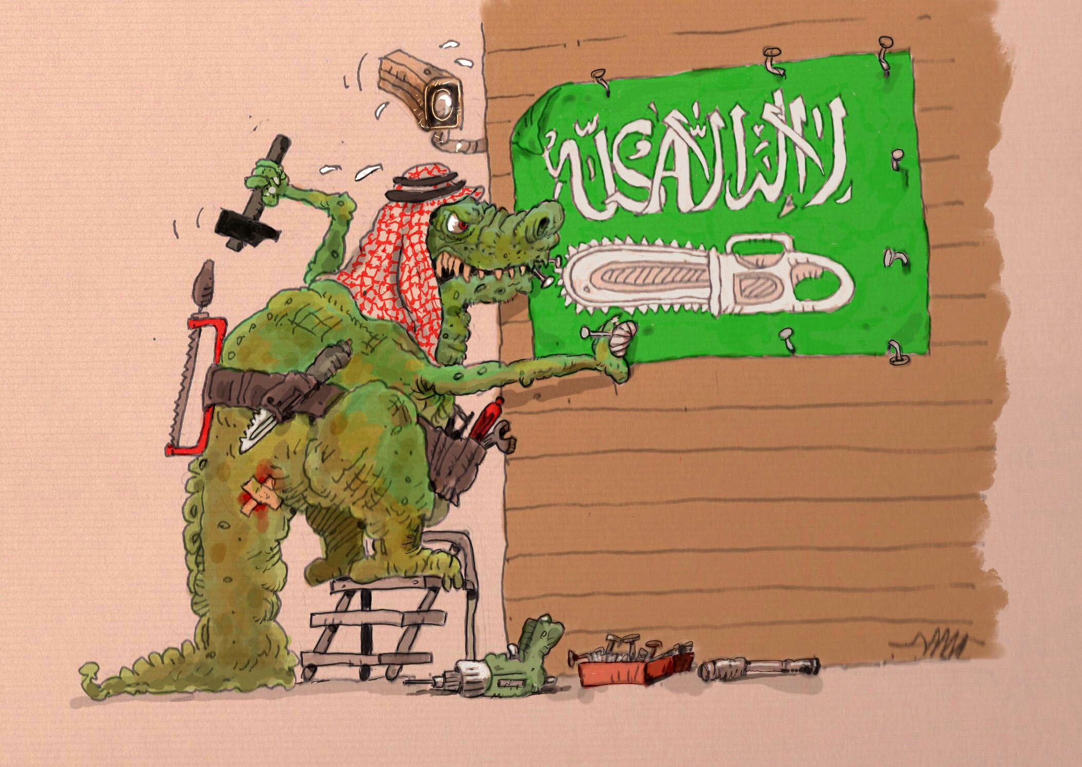 مسعود شجاعی طباطبایی، هنرمند کاریکاتوریست، در پی انتشار خبر کشته شدن روزنامه نگار مخالف رژیم آل سعود، اقدام به طراحی کاریکاتوری با این مضمون نموده است.