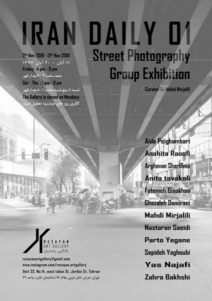 نمایشگاه گروهی عکاسی خیابانی «هر روز ایران ۰۱» از روز جمعه 11 آبان ماه 97 در گالری رضائیان تهران گشایش یافت.