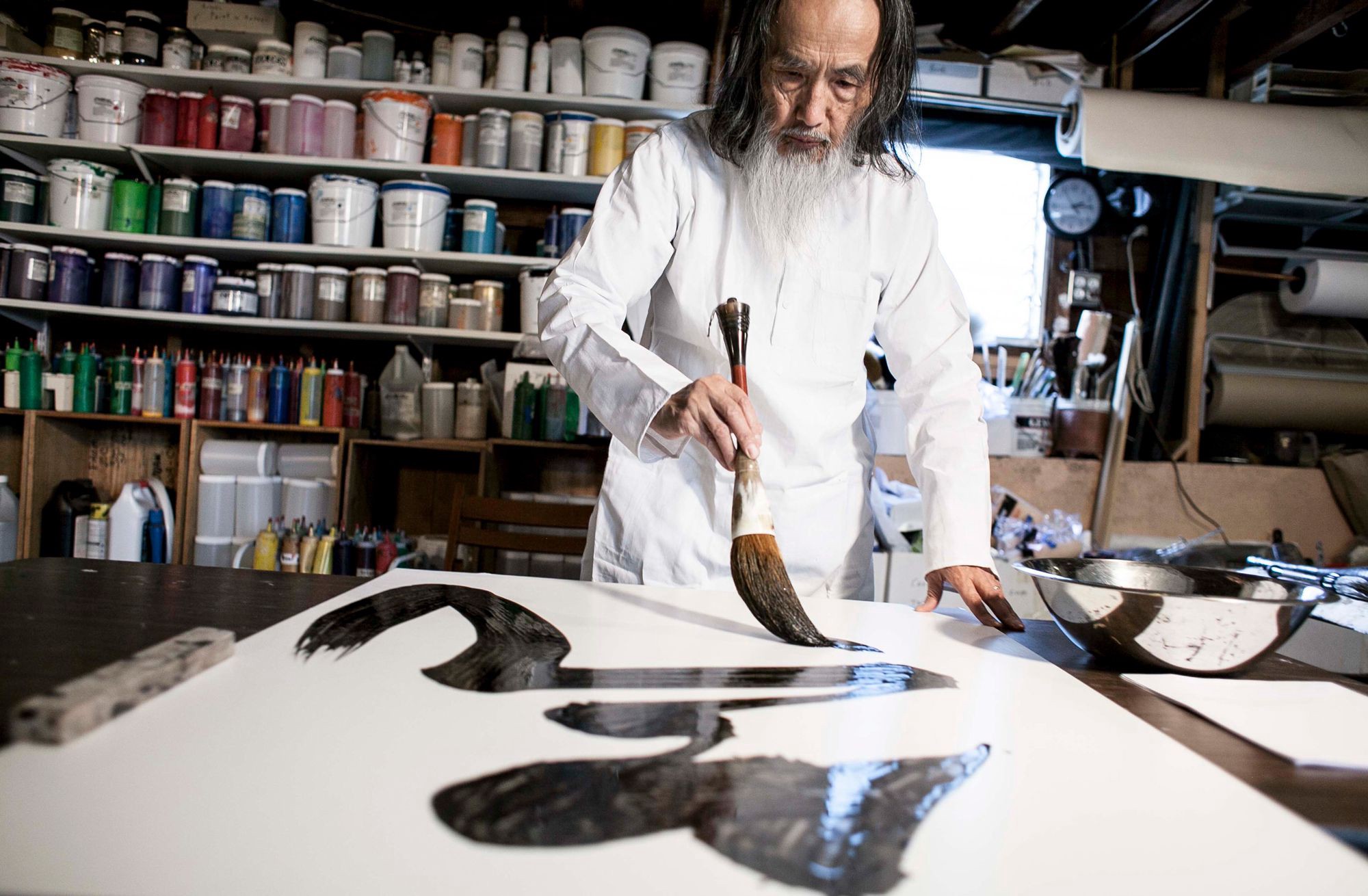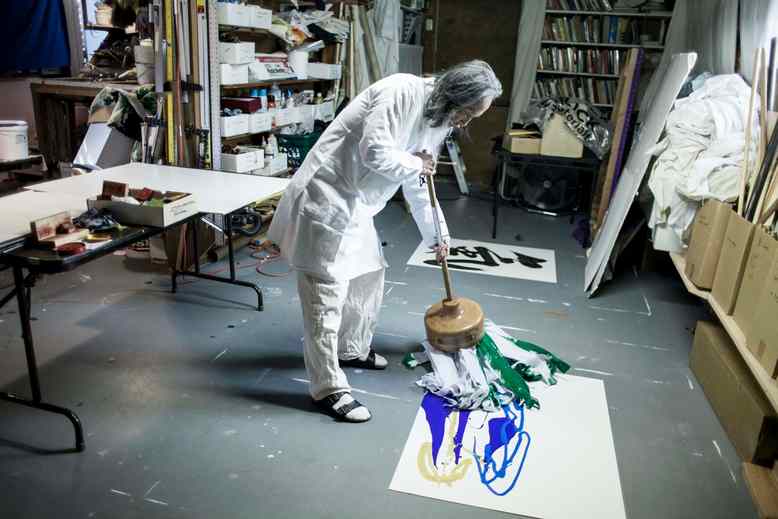 کازوآکی تاناهاشی در حال آموزش خوشنویسی