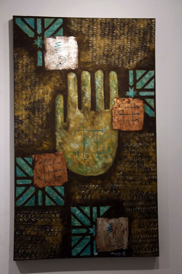 او درباره المان‌هایی که در نقاشی‌ها به کار برده است گفت: پنجه نمادی است که در دوران باستان هم وجود داشته و به معنی خوش‌یمنی بوده است. در ایران هم این معنا را داشت و پس از آن در دوران اسلامی به نماد پنج تن تبدیل شد که در سقاخانه‌ها نیز به کار می‌رفت. طلسم نیز دو معنای خوب و بد دارد و در زمان‌های گذشته مردم در سقاخانه‌ها طلسم آویزان می‌کردند و من در آثار خود وجه مثبت طلسم را مد نظر قرار دادم.