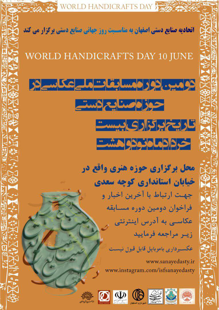 به گزارش روابط عمومی حوزه هنری استان اصفهان، در این مسابقات که با هدف زنده نگاه داشتن صنایع دستی در کشور برگزار می شود از تمامی عکاسان علاقه مند بالای 18 سال که به صورت حرفه ای و آماتور عکاسی می کنند دعوت می شود تا از صنایع دستی عکاسی نمایند.